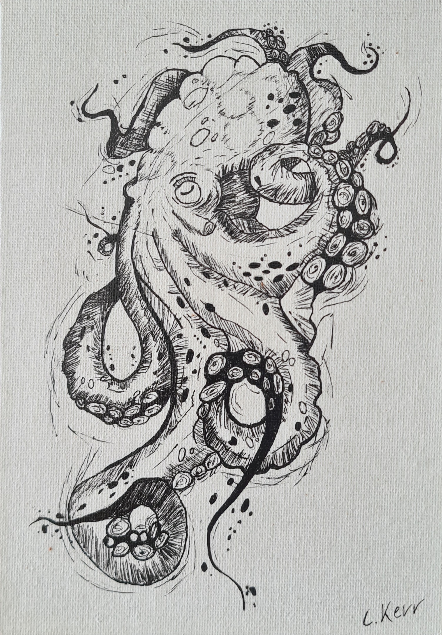 A5 Octopus Pen Artwork, hand-drawn by our local young artist Caitlin Kerr.